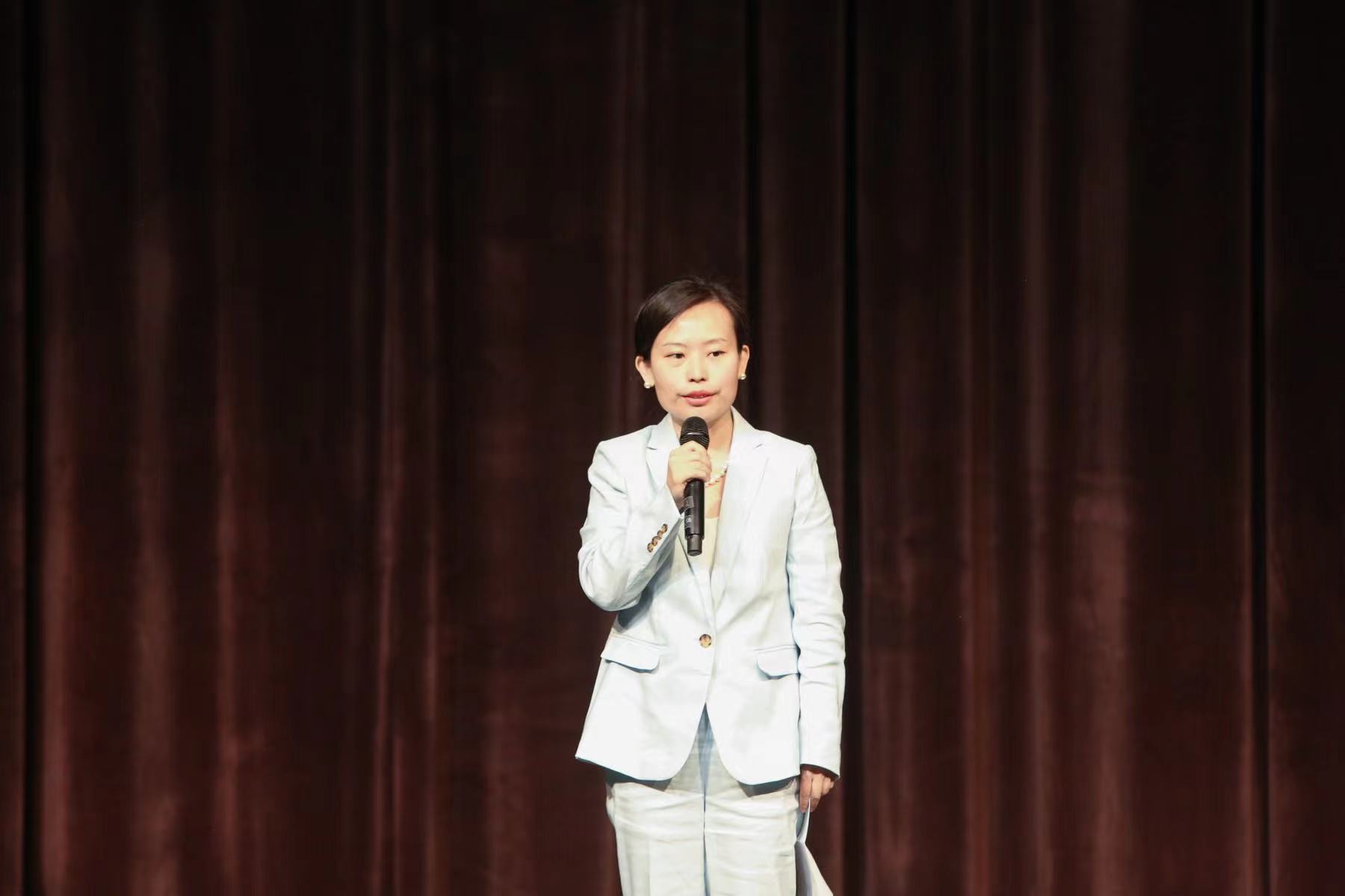 随后,总校长许凌渝女士为毕业生致词。她首先代表校务会对55位毕业生表示热烈的祝贺,对同学们在疫情困难之下坚持中文学习,并以高分通过HSK4级或5级考试表示高度的赞赏。她特别指出,在这傲人的成绩背后,凝聚的是老师们高度负责的教学态度和努力付出,校务团队优质的教学管理和家长们大力的理解与支持!我们衷心地感谢所有为孩子们学习中文创造良好环境的校务老师和家长们。最后,许校长对毕业生们表达了期望。她说,希望今天的毕业典礼不会成为同学们学习中文的终点,而是迈向更高目标的起点。同学们要继续学习并使用这门美丽的语言,向你的同学、朋友或邻居讲述中华文明的故事,让更多的人了解我们的文化并促进了解。