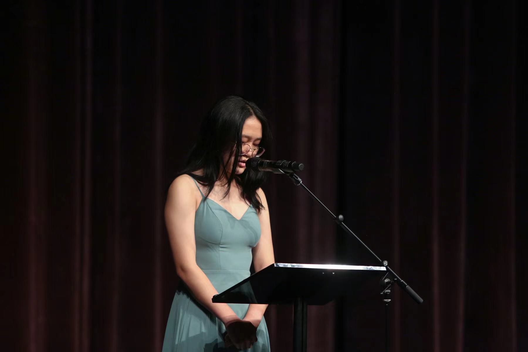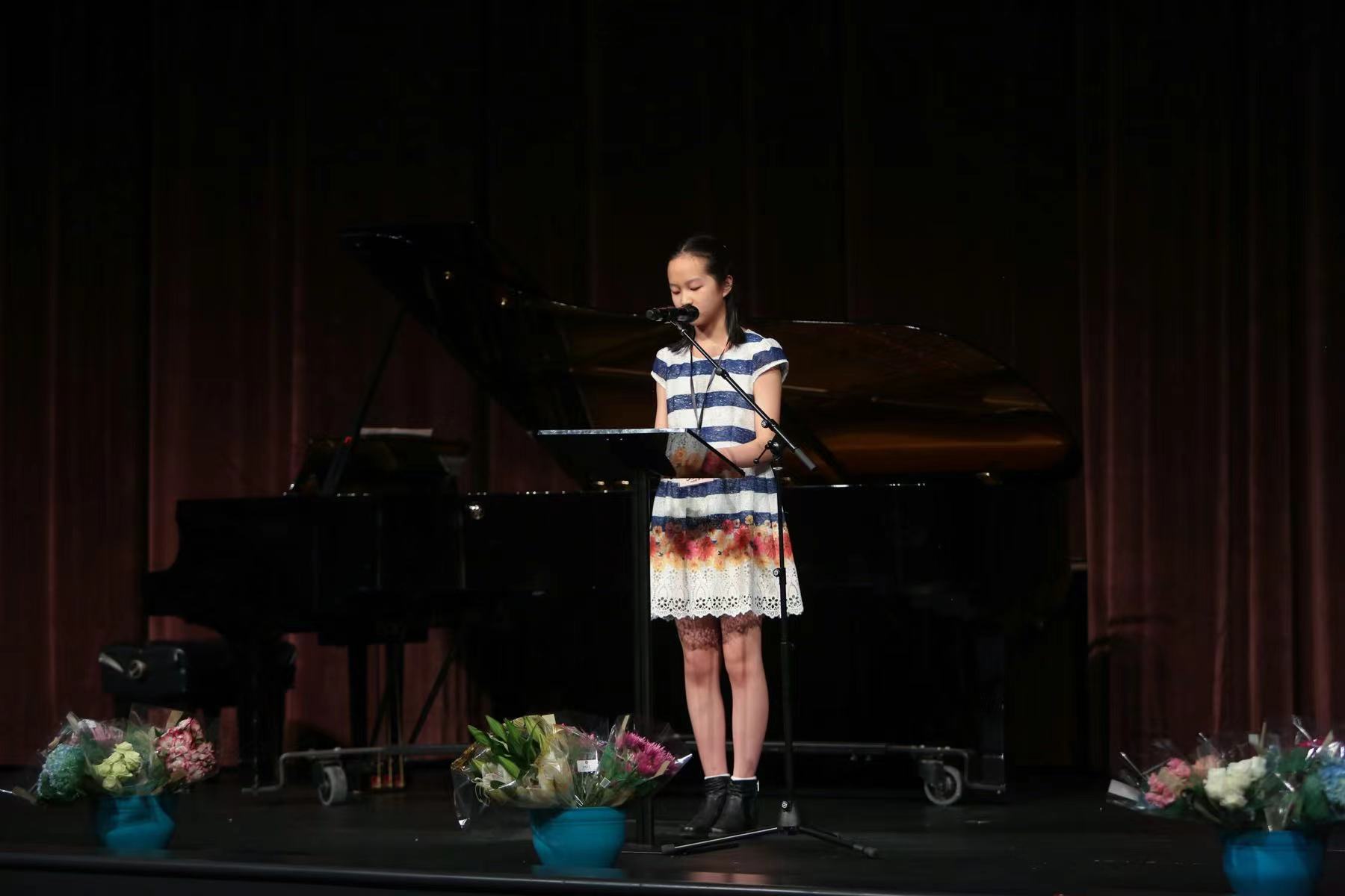 接下来播放的五个毕业班级的视频令在场的观众很感动,一张张照片,一幅幅画面记载的是莘莘学子们一路学习中文的努力,流露的是班级浓浓的的师生情和同学情。来自马立平九年级的高悦寒同学和暨南十年级的韩君晓同学代表全体毕业生发表感言。他们谈到数年学习中文的辛苦和坚持走到今天的收获。他们无比感谢所有老师的辛勤付出,无比感谢家长对他们的付出鼓励与陪伴,无比感谢亲如兄弟姐妹的同学们。他们会想念中文学校,也真心希望学弟学妹们珍惜在中文学校的每一天,学好中文!