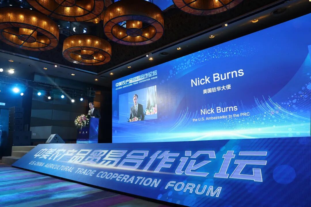 伯恩斯大使向一百多位美中两国的农业利益相关者发表讲话,阐述了农业贸易对两国的重要性,以及美国大使馆为能够在中国支持价值将近410亿美元的农业贸易而感到自豪。中国是美国第一大农产品出口市场。