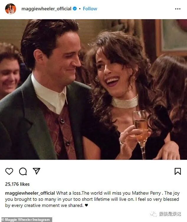 在《老友记》中饰演“钱德勒”前女友“珍妮丝”的玛姬·惠勒,在她的社交媒体悼发文悼念称:“世界会想念你马修·派瑞,你在短暂的一生中给这么多人带来了快乐,这些快乐将永远存在。”