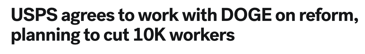 据abc news报道 美国邮政总局(USPS)局长路易斯·德乔伊(Louis DeJoy)已经同意与埃隆·马斯克(Elon Musk)的政府效率部门(Department of Government Efficiency,简称DOGE)合作,削减USPS约1万名员工和数十亿美元的预算。这一改革计划旨在解决USPS近年来面临的一系列财务和管理问题。