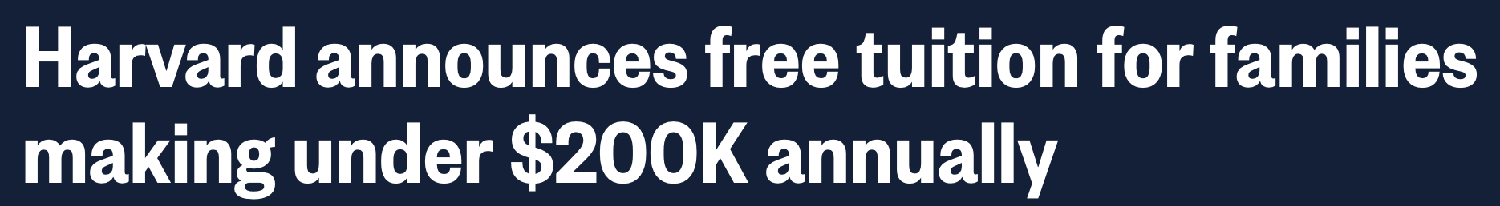 哈佛大学并非唯一一家扩大经济援助计划的高等教育机构。例如,德克萨斯大学系统去年宣布将免收学费计划扩展到年收入在10万美元或以下的家庭,而麻省理工学院也宣布将为家庭年收入低于20万美元的本科生免除学费。