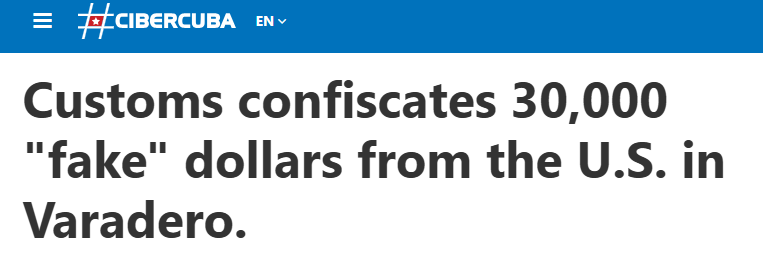 “海关采取了适当的措施,防止这些假钞被用于犯罪活动,比如最近在马坦萨斯发生的一起类似诈骗案”,一名古巴妇女辩解道,她指的是最近一名马坦萨斯居民因试图在一家咖啡馆使用一张百元假钞付款而被捕。