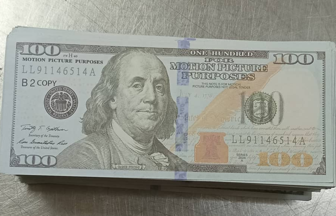 报道称,这些钞票上贴有“用于电影拍摄”的标语。