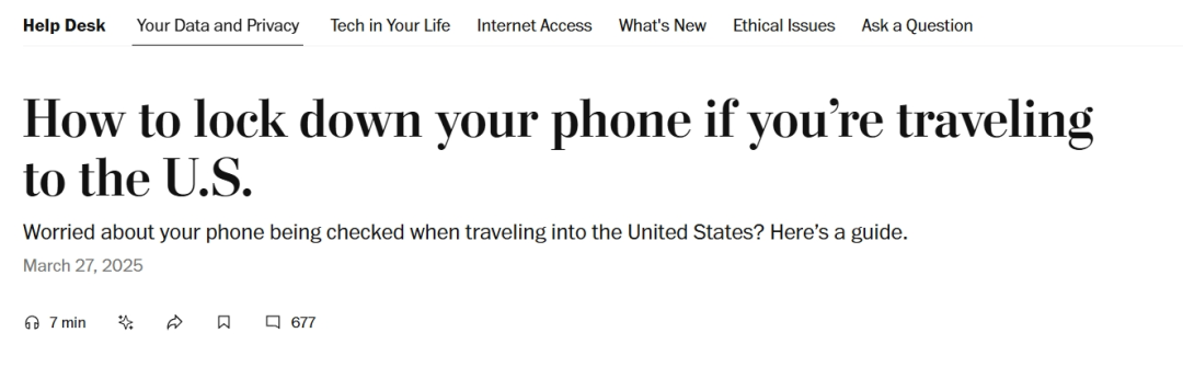 综合报道 前往美国的国际旅客近期需格外注意一个常被忽视但可能带来严重后果的问题——是否愿意解锁手机或电脑,让美国海关边境保护局(CBP)人员检查?
