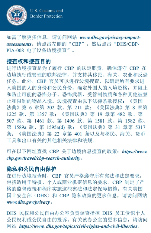 因此,对于前往美国的中国公民来说,深入了解CBP官员审查个人电子设备的相关法律和执行政策尤为关键。明白这些规定不仅有助于在入境时保护自己的隐私权,也能有效避免不必要的法律风险。(华人资讯网、纽约时间)