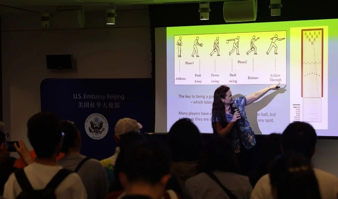 外交官Laura Hinton主持了保龄球环节,向观众介绍了这项运动的基本规则、标准姿势以及计分方法。