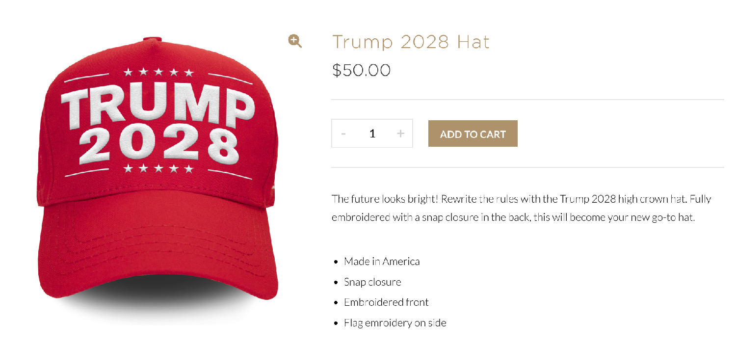 “我从未收到过如此强烈的要求。但据我所知,这是不被允许的,”特朗普告诉MSNBC的克里斯汀·韦尔克。“很多人兜售‘2028年总统竞选帽子’,但这不是我想要做的。我希望拥有四年辉煌的任期,然后把它交给某人,最好是一位伟大的共和党人来继承它。但我认为我们将有四年的时间,而四年的时间足够让我们做出一些真正了不起的事情。”