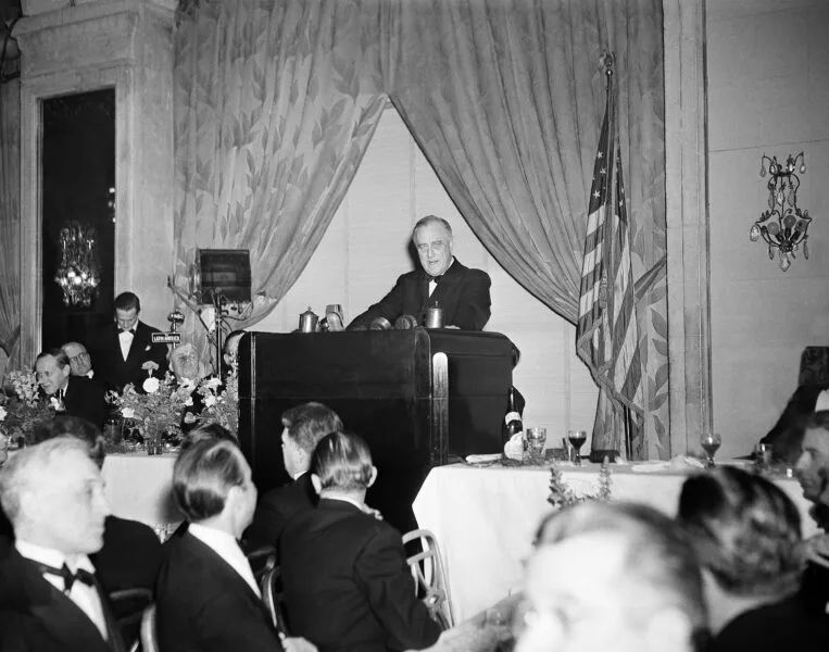 民主兵工厂这个称呼最早出自富兰克林·罗斯福(Franklin D.Roosevelt)总统1940年12月29日的一次著名演讲,当天罗斯福总统通过广播向全国发表了“炉边谈话”(Fireside Chat)。这次谈话的主题是加强对英国等反法西斯国家的援助,强调美国必须成为盟国抵抗法西斯的后盾,他表示美国应该成为民主的兵工厂,对美国来说,这是一场堪比战争的紧急状态,必须以战时同样的决心、紧迫感全力以赴。罗斯福总统还表示应迅速扩展工业生产能力,将汽车厂、机械厂等全部转向国防装备生产,援助英国、中国、希腊等盟国,向他们提供飞机、坦克、船只、弹药等,以保持世界民主国家的实力。此后,民主兵工厂成为美国在二战中世界反法西斯物资和军工生产的支柱,对战争产生了巨大的影响,同时也使得美国的军工企业得到大发展。