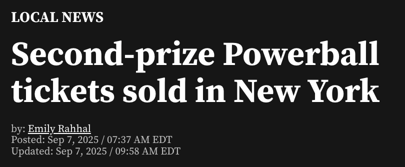 在周六开奖前,纽约共有23张三等奖彩票售出,每张奖金为5万美元,其中七张售出于纽约市。