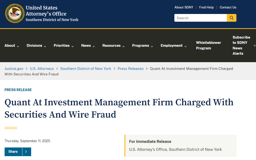 与此同时,美国证监会(SEC)也对其启动了民事诉讼。指控他从2021年到2023年,秘密修改至少14个投资模型,误导公司与客户,导致公司支付他不当奖金,同时引起客户巨大损失。
