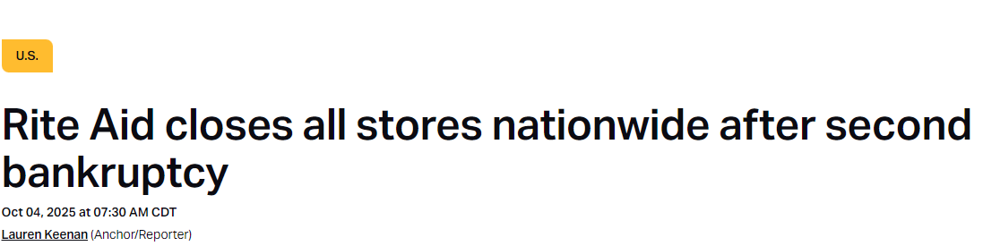 到了2025年5月,Rite Aid不得不再度向法院申请破产保护。执行长马特·施罗德(Matt Schroeder)坦言,公司面对的困境已无法逆转:“零售药房和医疗保健环境正在急剧恶化,我们再也无力支撑。”