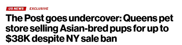 皇后区宠物店无视纽约州禁令,以高达3.8万美元的价格出售幼犬
