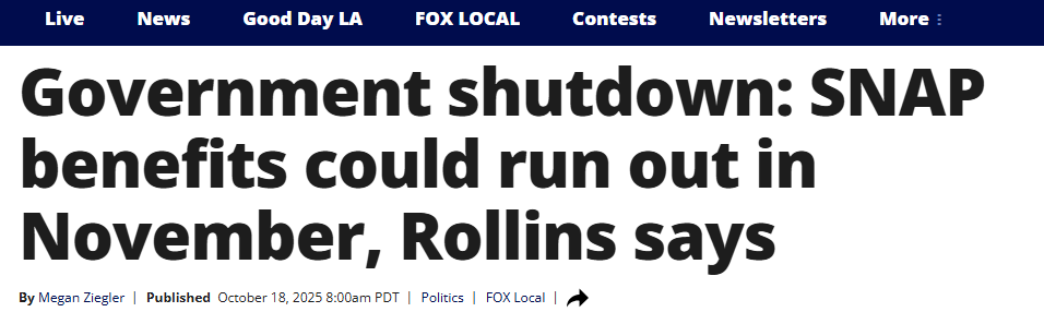 此外,农业部长Brooke Rollins本周在社交媒体上表示,SNAP资金预计将于11月1日耗尽。