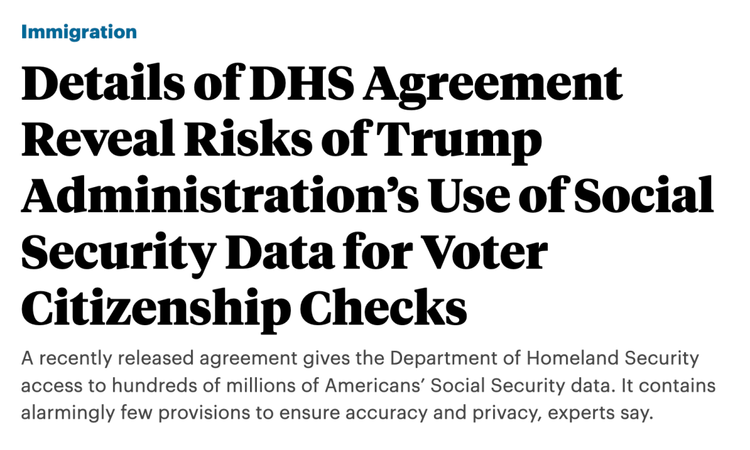 这一计划被官方描述为“提高系统准确性与效率”的技术整合,但它可能成为美国历史上最大规模的个人数据集中化项目之一。DHS表示,新系统将通过整合多种来源的机密数据(包括社会安全号码、护照信息、签证资料等),帮助识别选民名单中的非公民、查处移民福利欺诈,并强化移民执法。