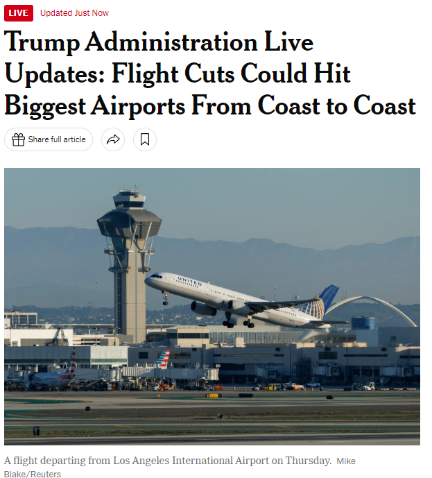 FAA局长布莱恩·贝德福(Bryan Bedford)在记者会上表示,减少航班运力是为了确保空域安全。“空管人手已经严重不足,如今还连续六周没发工资。我们必须通过削减流量来分散工作压力。”