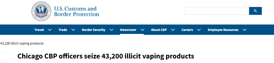 美国海关和边境保护局官员近日在芝加哥查获了数托盘非法电子烟产品,这些产品违反了《联邦食品、药品和化妆品法》。