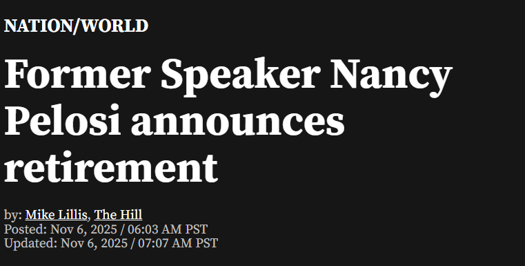 美国众议院前议长佩洛西官宣即将退休,40年政治生涯终结(美中報道)
