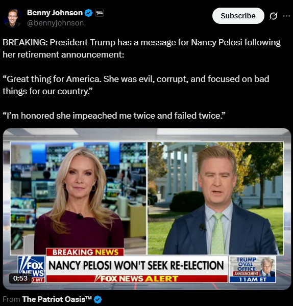 佩洛西曾称川普是“地球上最糟糕的东西”。川普则在佩洛西宣布退休后迅速回应,称她“腐败又邪恶”。两人之间长年的政治冲突贯穿了美国现代政治史的关键时刻。