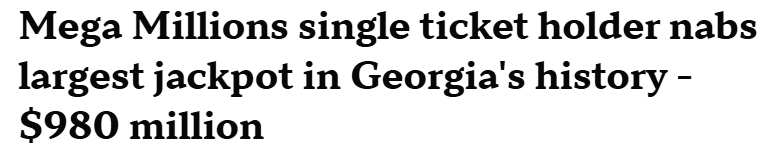 单注赢得$9.8亿Mega Millions!乔治亚州诞生史上最大彩票大奖(美中報道)