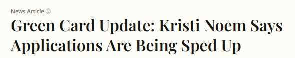 美国国土安全部长克里斯蒂·诺姆(Kristi Noem)近日宣称,特朗普政府在“加快”绿卡与签证办理速度上取得进展,并表示,今年成为归化公民的人数比往年更多。