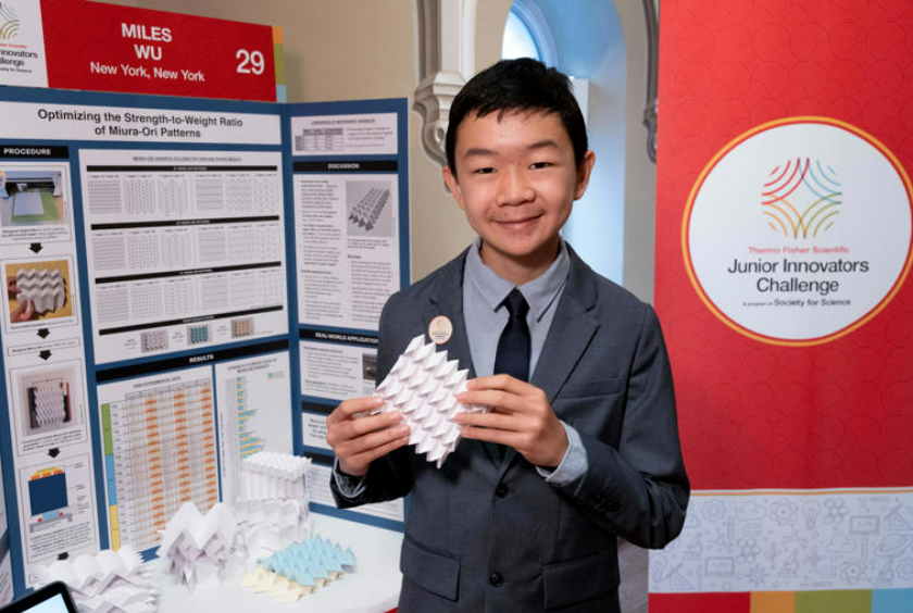 纽约市14岁的华裔少年迈尔斯·吴(Miles Wu)在多数同龄人还在折纸飞机时,已经开始探索如何将折纸技术应用于灾难救援设备。