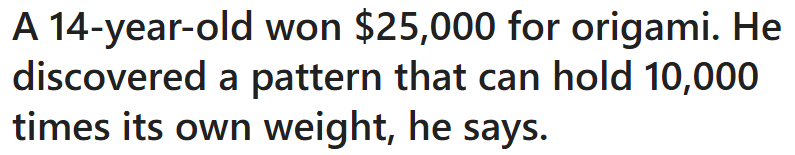 获2.5万美元奖金!美国14岁华裔少年将折纸技术应用于灾难救援设备(美中報道)