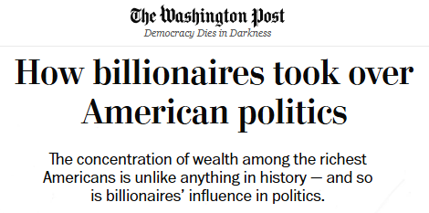 但鉴于亿万富翁在美国政治中日益扩大的影响力,政客们要反对他们远比摆脱其影响力容易得多。