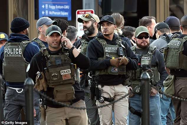自8月以來,特朗普已向華盛頓特區部署了2300名國民警衛隊士兵,以履行其打擊首都猖獗犯罪的承諾。執法人員在兩名西佛吉尼亞州國民警衛隊成員遭槍擊的現場附近執勤。