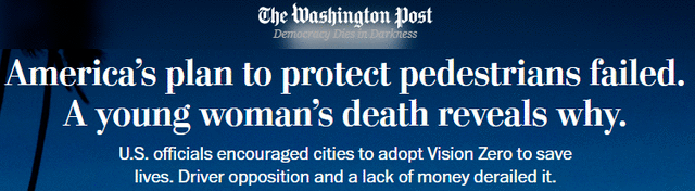 但《华盛顿邮报》对行人死亡数据的调查显示,尽管降低限速和增加人行横道等挽救生命的措施相对便宜,但该计划在美国各个城市都遭遇了失败。