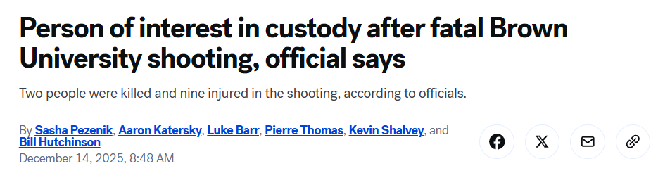 至少2死9伤!布朗大学大规模枪击案嫌犯落网!学生回述惊魂时刻(美中報道)