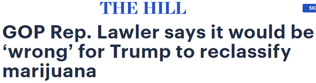 共和党籍纽约州众议员迈克·劳勒(Mike Lawler)周一表示,川普若改变大麻的管制级别,将是一个不明智的决定。