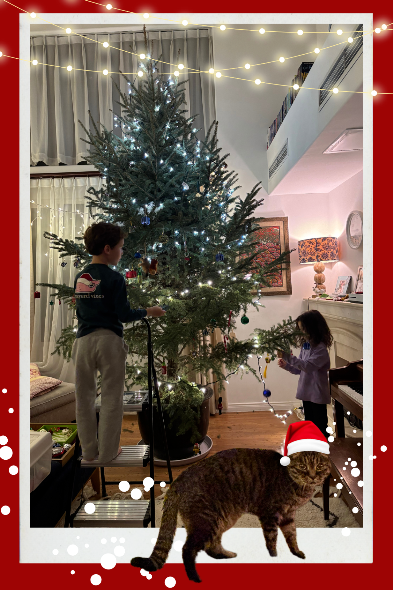 我最喜欢的圣诞节传统之一,就是和家人一起装饰圣诞树。我们这些年从不同国家收集了很多装饰品,每次把它们挂到树上,就会勾起一连串的回忆。孩子们也特别享受把自己最喜欢的挂饰挂到树上的过程。我们一边听圣诞音乐,一边喝热巧克力,一边把家里的树一点点装扮起来。