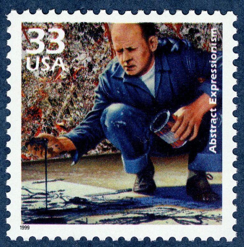 一种更强调动作与笔触,以杰克逊·波洛克(Jackson Pollock,1912–1956)为代表。他把画布从画架上解放出来,铺在地面上,通过倾倒、滴洒、飞溅等方式作画。观者往往能在画面中看到创作的动势、节奏与偶然,看到“行动发生过”的痕迹,欣赏时不妨去感受笔触的速度与停顿,密度的堆叠与释放,画面如何在爆发与克制之间取得平衡。