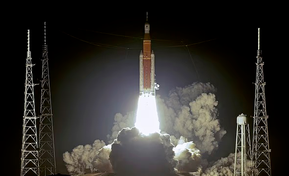 这枚高达322英尺的火箭将把4名宇航员送出地球轨道,首次在载人情况下对“猎户座”飞船进行深空测试。这标志着继阿波罗时代之后的重要里程碑,人类上一次登月还要追溯到1972年。