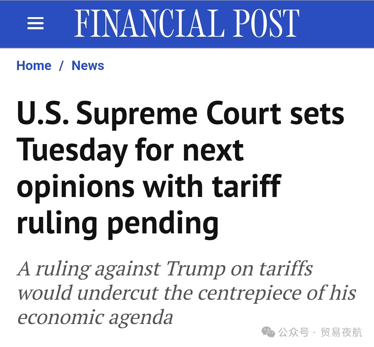 美国最高法院已将下周二定为下一个发表意见日,全世界都在等待对特朗普全球关税政策合法性的裁决。