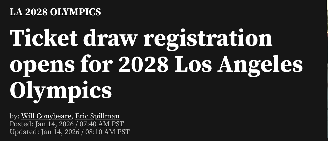 据KTLA网站1月14日报道 2028年洛杉矶奥运会门票抽签注册已于本周三上午正式开启,标志着全球观众首次获得参与奥运门票发放抽签的机会。