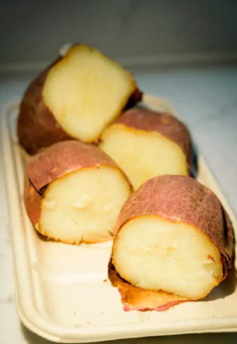 在市场、熟食店和街边小摊,精打细算的上班族们愿意花几美元买几块简单的烤红薯——这种朴素的、看起来略显粗犷的小吃,却越来越受到人们的喜爱,甚至直接当作正餐,不用装饰、不用调味。