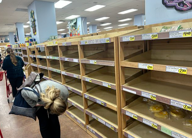 田纳西州诺克斯维尔的一家Aldi超市面包区只剩下一条面包,鸡蛋和牛奶几乎售罄。弗吉尼亚州和俄克拉荷马州的消费者也分享了类似画面,瓶装水、婴儿用品、面包和纸制品成为抢购重点。