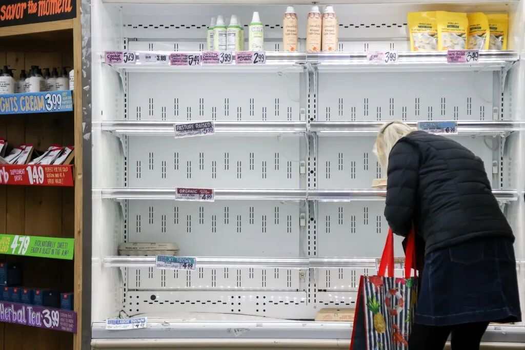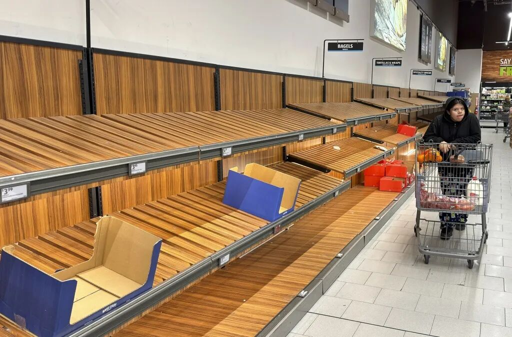 极端天气已严重扰乱美国民众正常生活,多地出现物资抢购潮。在得州达拉斯市中心附近的一家杂货店内,居民肯尼迪·马拉德和弗兰克·格林透露,店内的水、鸡蛋、黄油、肉馅等生活必需品已被抢购一空,部分货架完全空置,民众纷纷囤积物资以应对持续的恶劣天气。