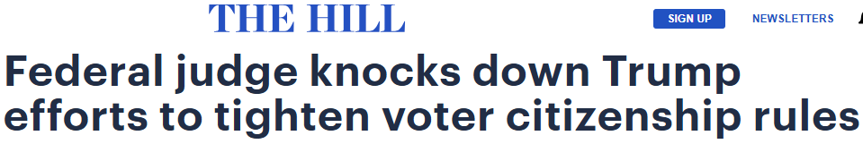 联邦法官裁决阻止川普改革选举程序的行政令,强制核验选民身份规定被叫停(美中報道)