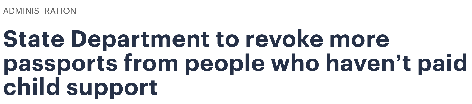 美国国务院对美联社表示:“我们正在评估执行这项长期存在的法律的各种选项,以防止那些拖欠大量子女抚养费的人逃避对子女应尽的法律和道德责任。”(信息来源:The Hill)