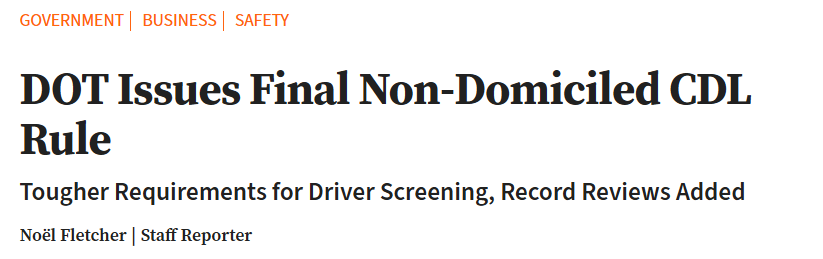 综合报道 美国交通部近日颁布最终法规,进一步收紧针对“非定居类商业驾照(non-domiciled CDL)”的发放标准,旨在加强对外籍商业司机的审查。新规明确规定,各州在签发此类驾照及学员许可(CLP)时,必须遵循更严格的审核标准。