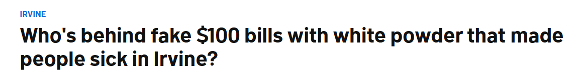 在南加州尔湾市(Irvine)一家超市内,几张假冒的100美元钞票,竟让两名员工身体不适、紧急送医。这起离奇事件目前已引发警方和消防部门介入调查。