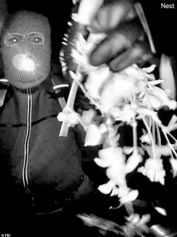 视频中,这名蒙面人并没有使用专业工具去拆除摄像头。相反,他做出了一个令人意想不到的举动:他转身从门廊边抓起一束植物,试图用它来遮挡镜头。就在他抬手的一瞬间,镜头捕捉到了关键细节:他用左手拿着植物,动作略显笨拙。而那副巨大的手套,显然是为了彻底杜绝留下指纹和DNA的可能性。
