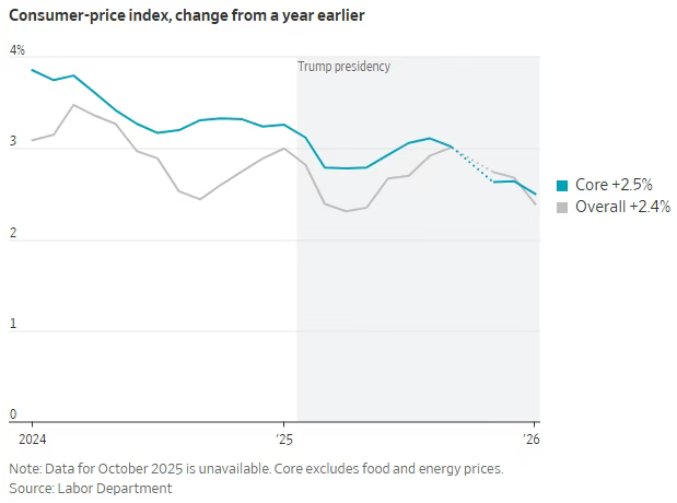 川普实施关税并发动贸易战,但并未引发许多经济学家担忧的通胀飙升。上月年度通胀率为2.4%,低于2025年1月川普重返白宫时的3%。不过,美联储偏好的另一项通胀指标显示,去年12月价格涨幅有所加快。