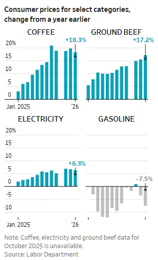 尽管涨幅放缓,但物价仍远高于疫情前水平,美国民众已对此感到厌倦。全国汽油价格有所下降,但咖啡和牛肉陷等商品价格大幅上涨,支出压力依旧明显。