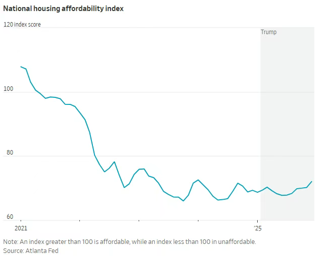 目前,一个收入处于中位数水平的家庭若购买一套价格处于中位数水平的住房,需将月收入的42%用于支付按揭、房产税和保险。尽管较2025年1月的44%略有改善,但负担仍然沉重。