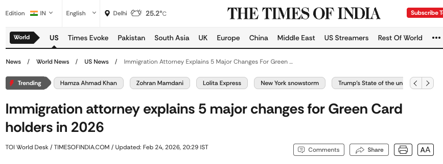 移民律師Sekou Clarke在其最新發佈的視頻中,梳理了美國綠卡持有人面臨的五項重大變化,這些變化已生效或即將生效。