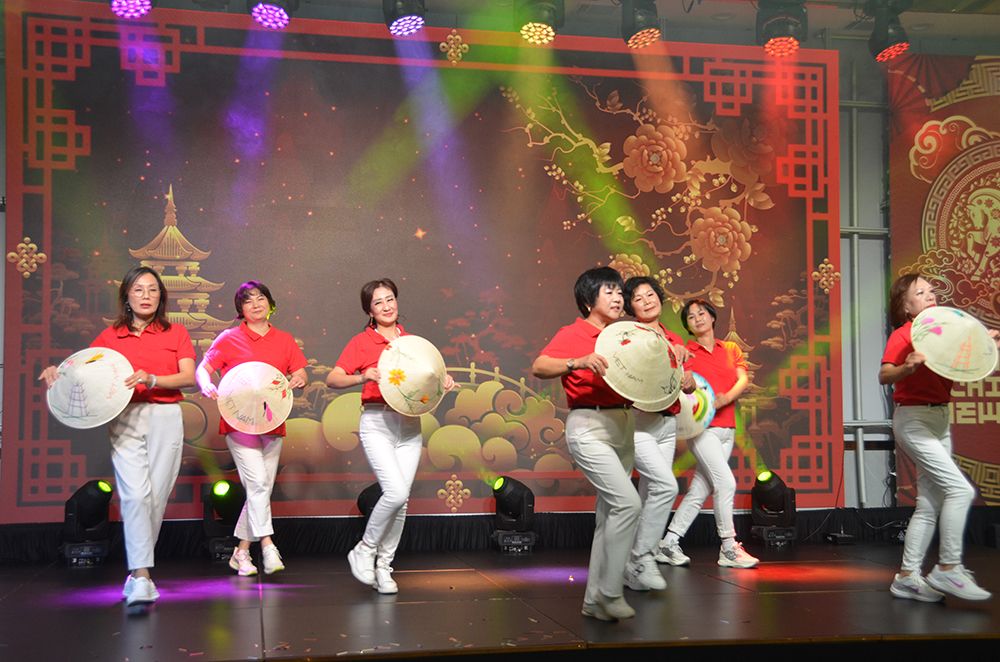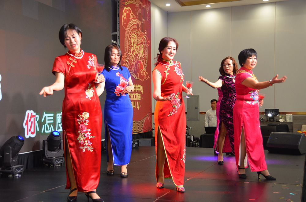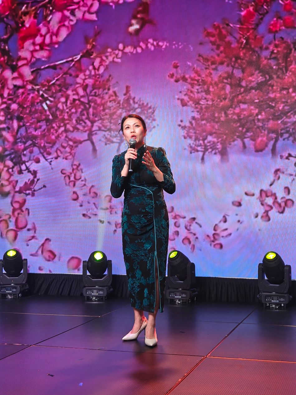 文艺表演精彩纷呈。Avery Zhou表演了《Flight of Arrow》等获奖的现代舞;林晓女士深情演唱《乌兰巴托的夜》;主持人林岚演绎《青玉案·元夕》,婉约细腻的唱腔将宋词意境娓娓道来。江爱金老师率同乡会文艺队献上开门红《舞龙》、舞蹈《珊瑚颂》、旗袍秀《美酒加咖啡》、斗笠舞《月光不归》等节目,展现浓浓中华风情。